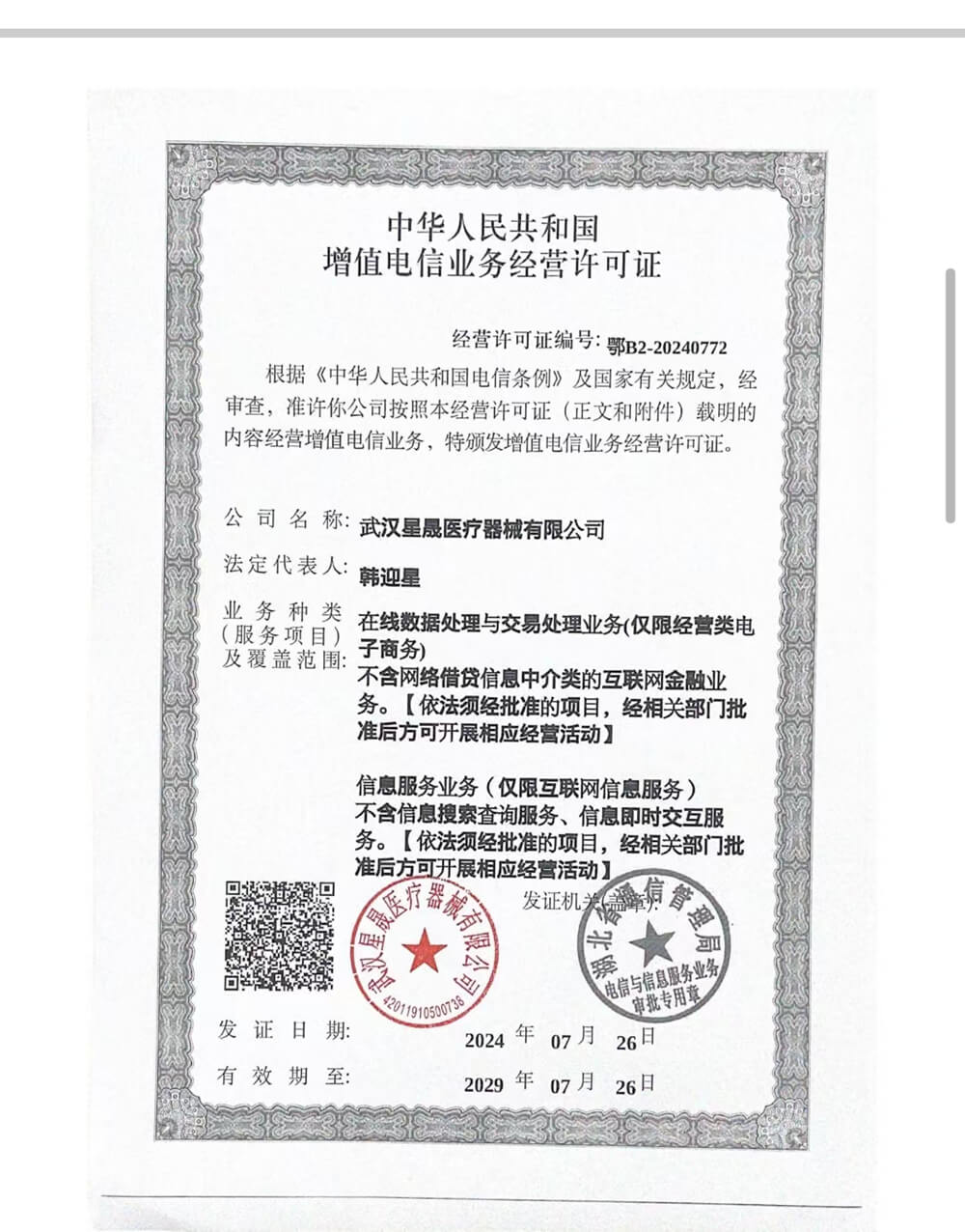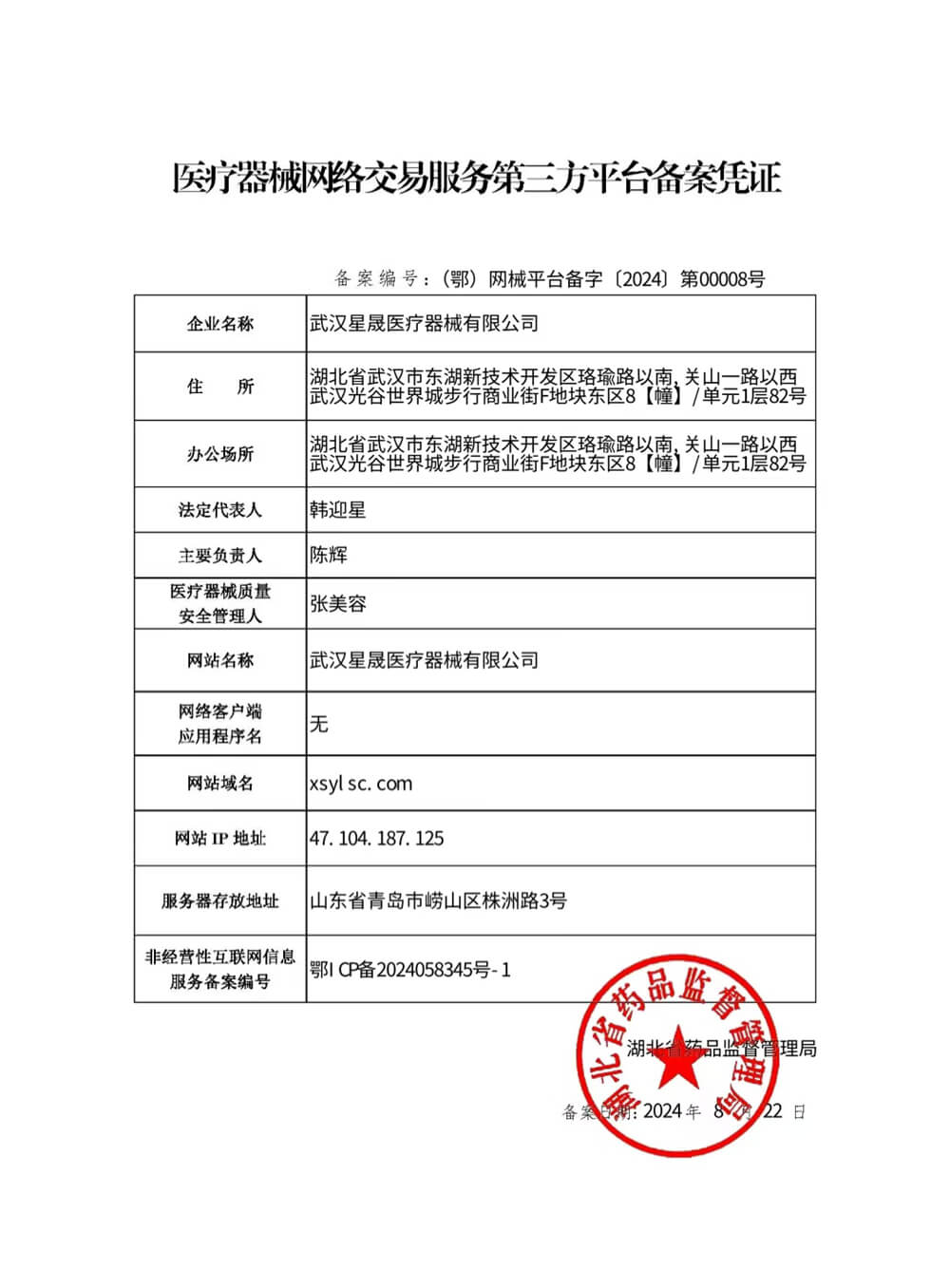 医疗器械网络买卖服务第三方平台备案证:(鄂)网械平台备字[2024]第00008号